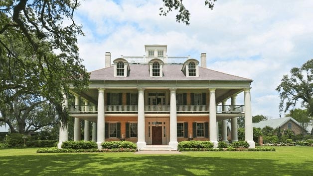 Plantation homes are grand, stately homes that are generally two-stories and boast pillars, a symmetrical shape, and sprawling porches. Although generally associated with the US south, these spacious homes can be found across the country. Many plantation homes are done in a Greek Revival style, which flourished in the 1830’s and 1940’s. These homes also feature tall columns and pediments, a painted plaster exterior, bold moldings, and embellishments.